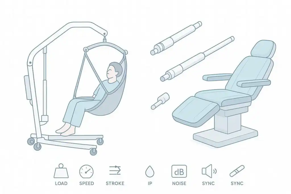 Medical device R&D teams face a specific job to be done: select an actuator and control stack that’s safe, quiet, compact, certifiable, and still flexible enough to meet real packaging constraints. This medical linear actuator comparison focuses on two high-impact applications—patient lifts and beauty or aesthetic treatment chairs—anchored on customization breadth across load, speed, stroke, synchronized motion, and controls.