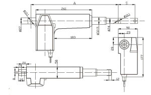 Overall length (A): 261mm (base unit)